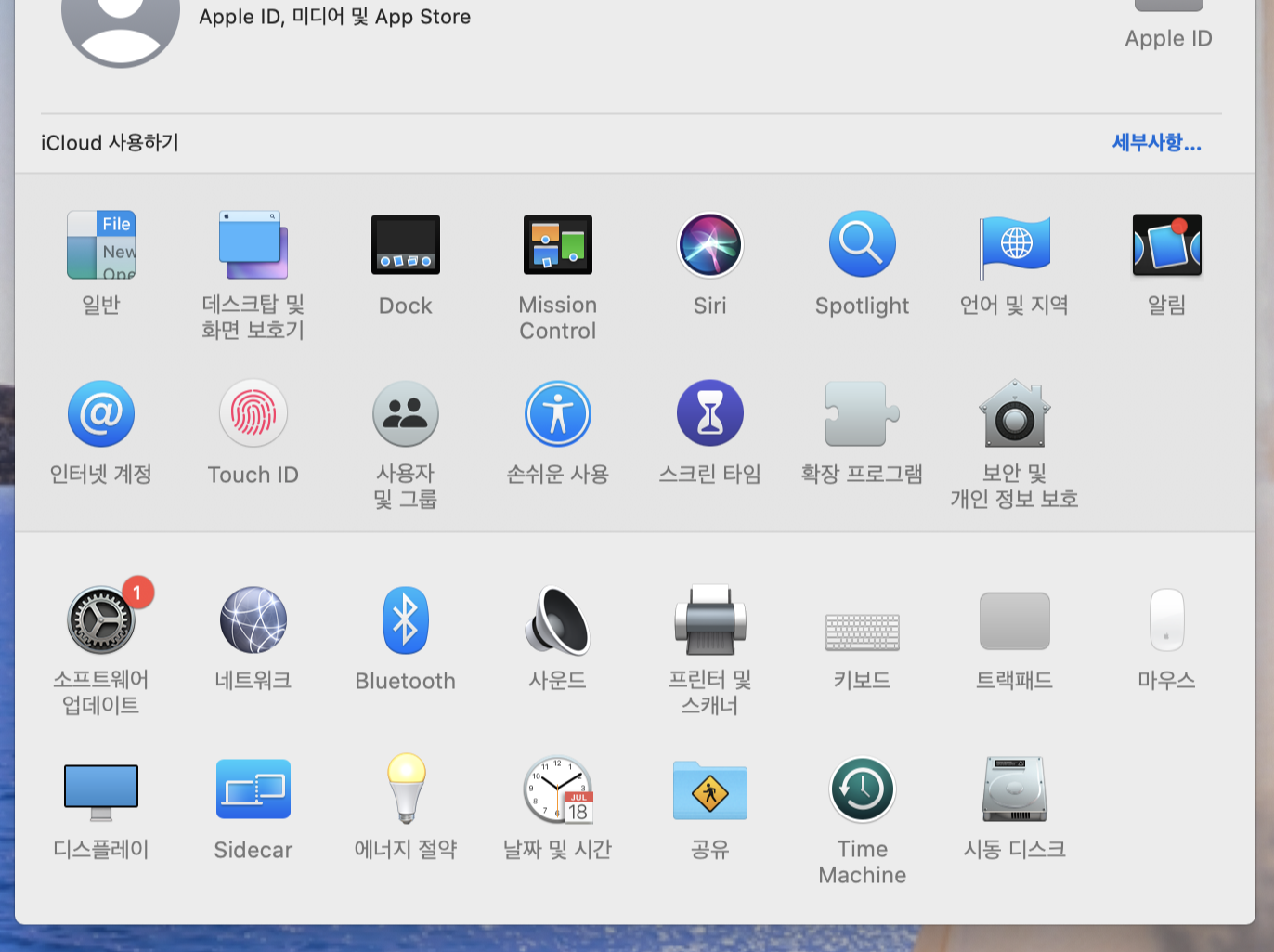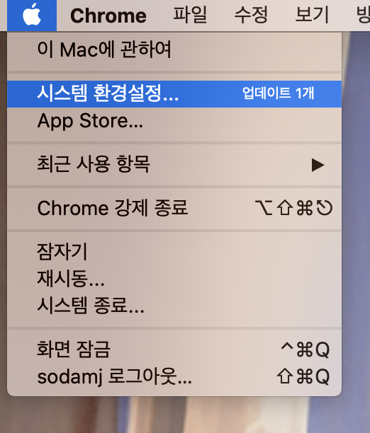 '시스템 환경설정'에 들어가 주세요!